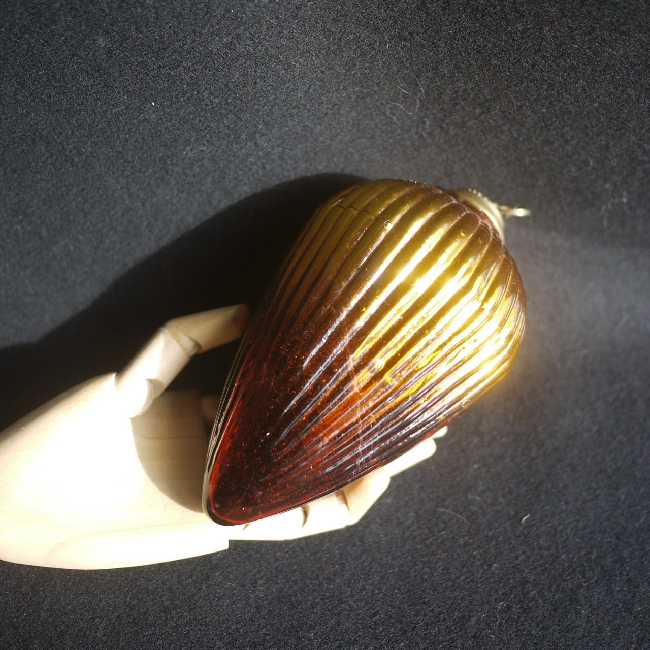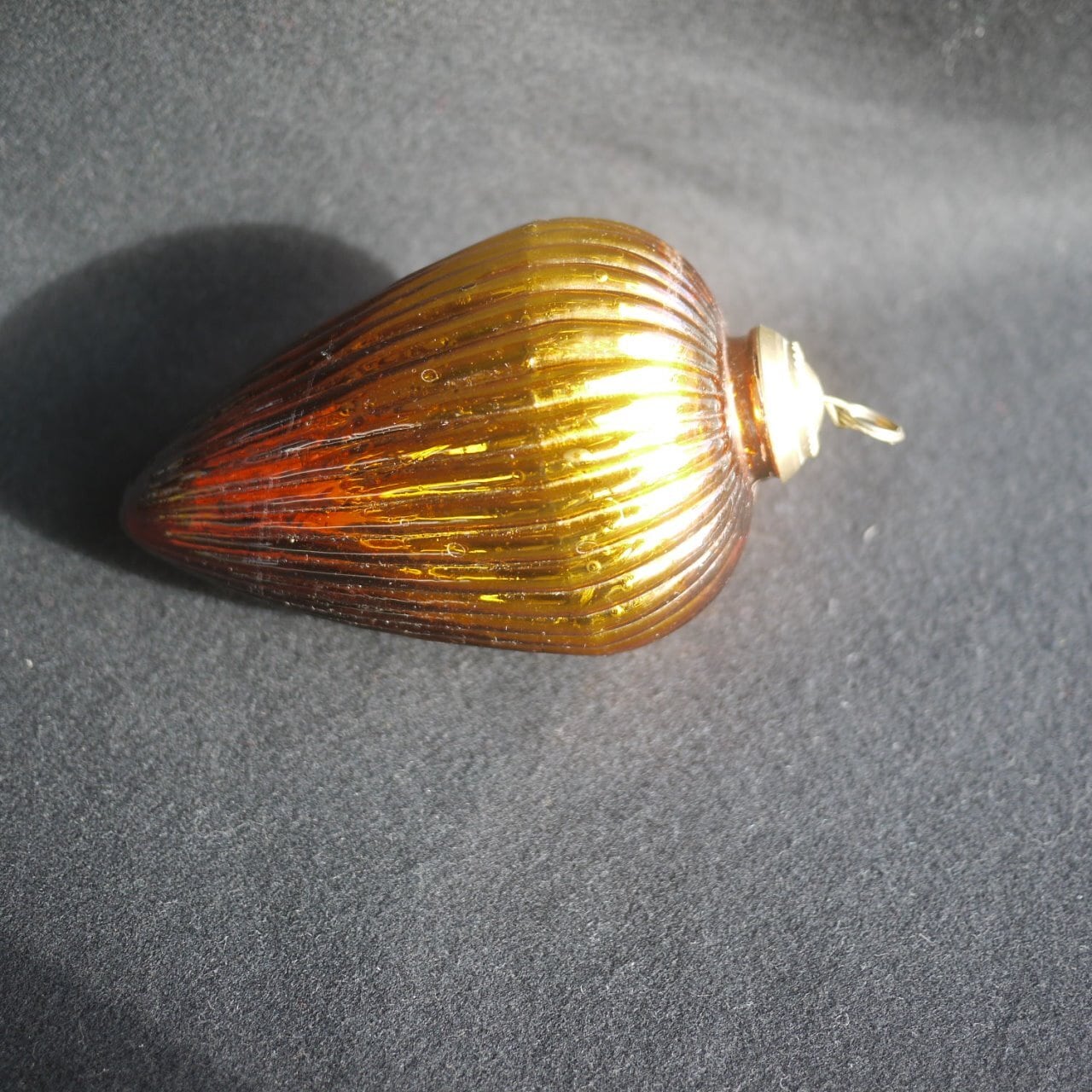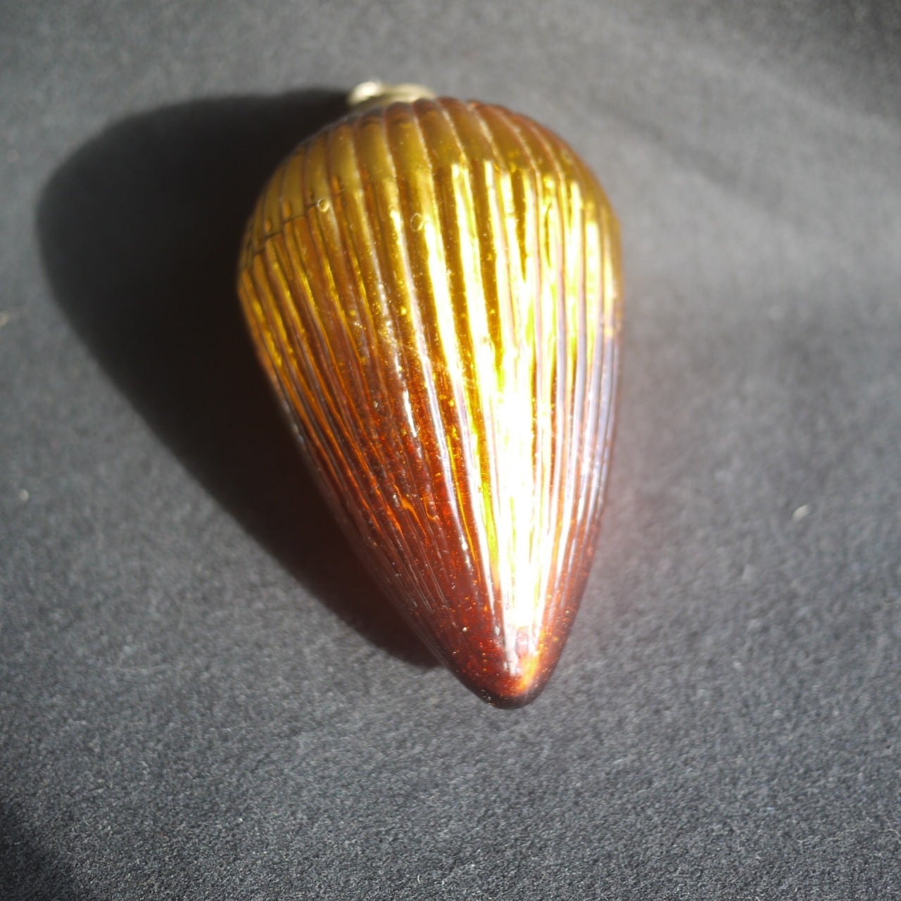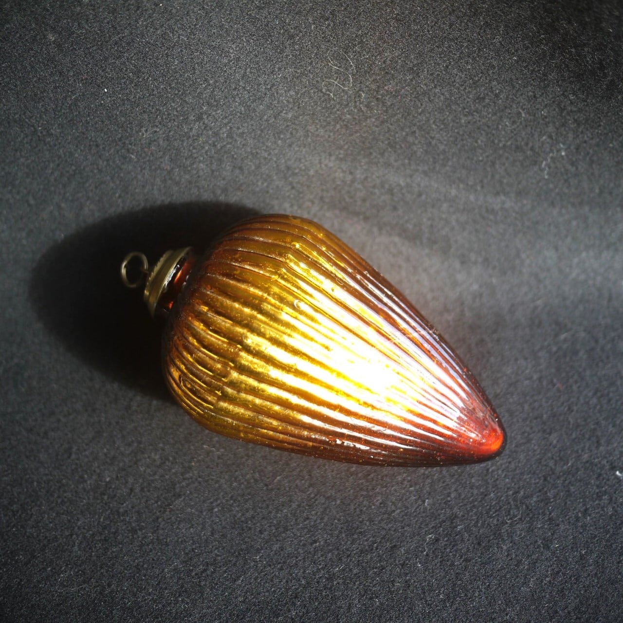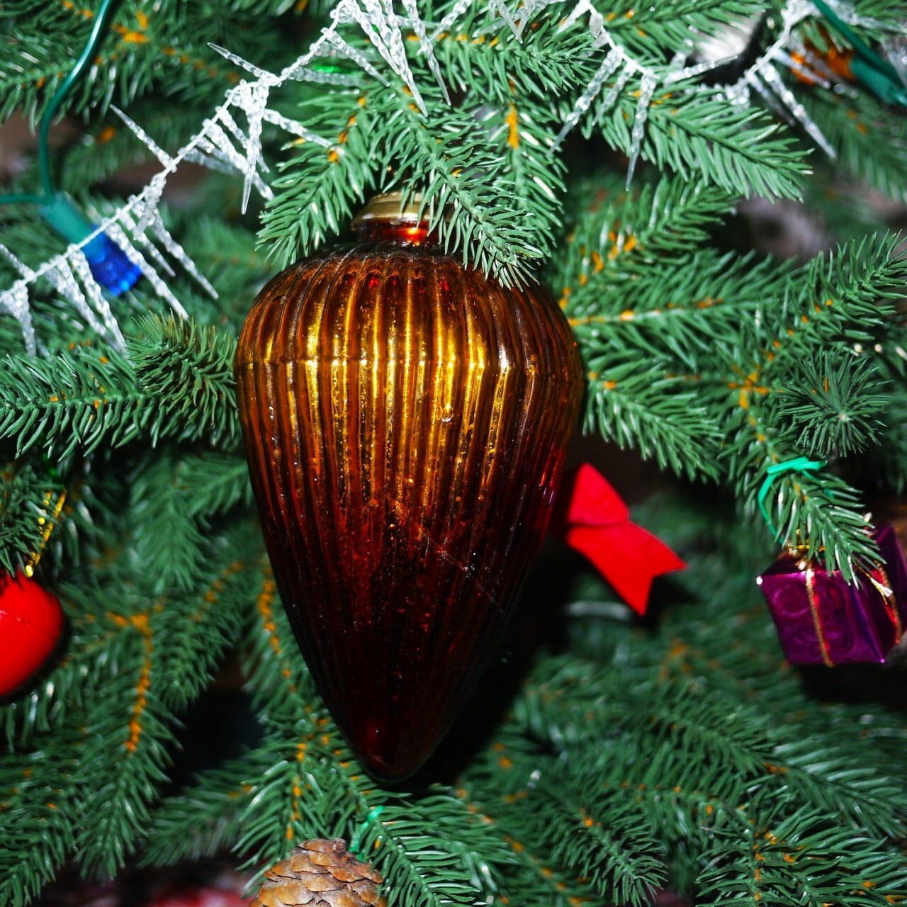 [クリスマスオーナメント アンバー色リブガラス つぼみ型 マーキュリーガラス]