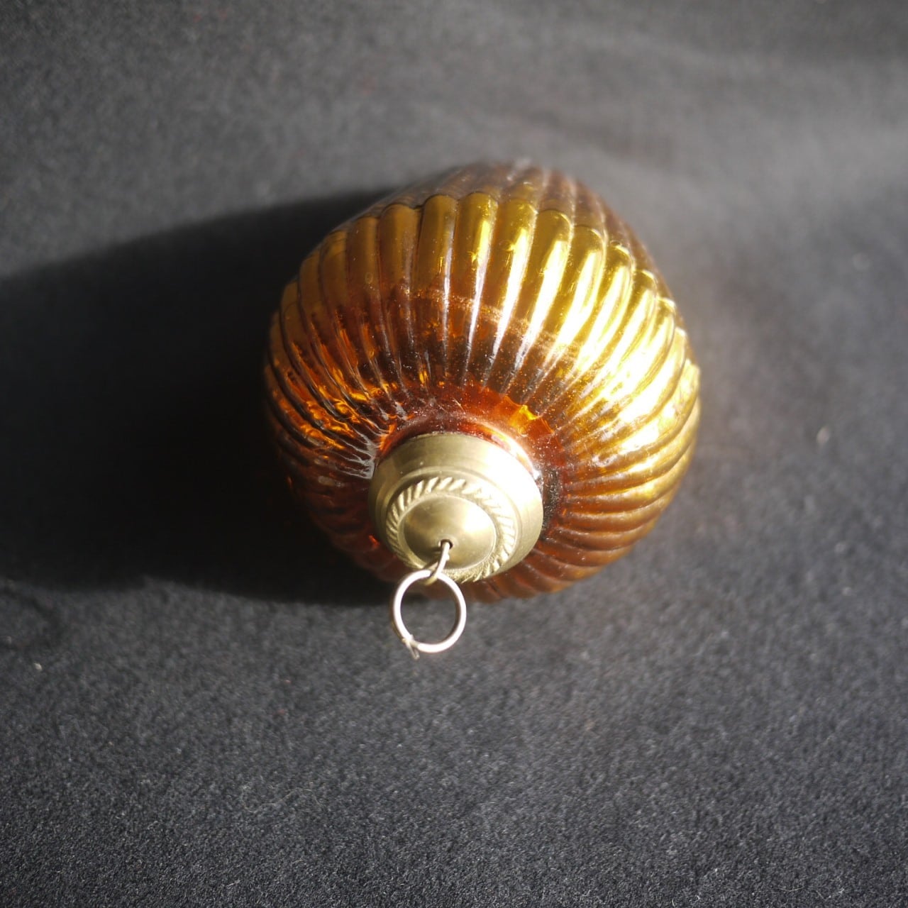 クリスマスオーナメント アンバー色リブガラス つぼみ型 マーキュリーガラス