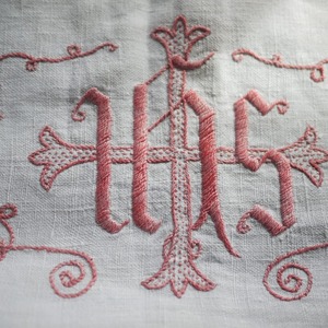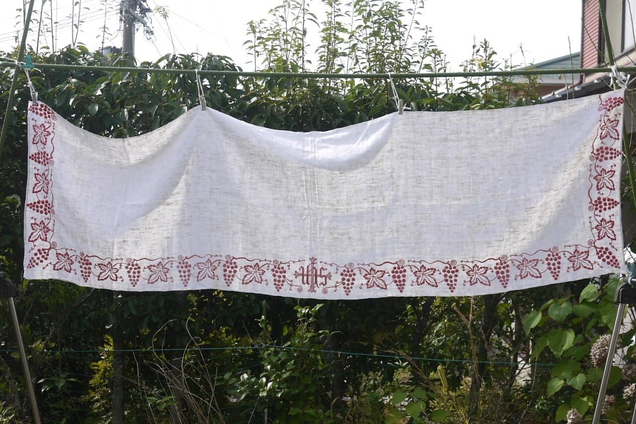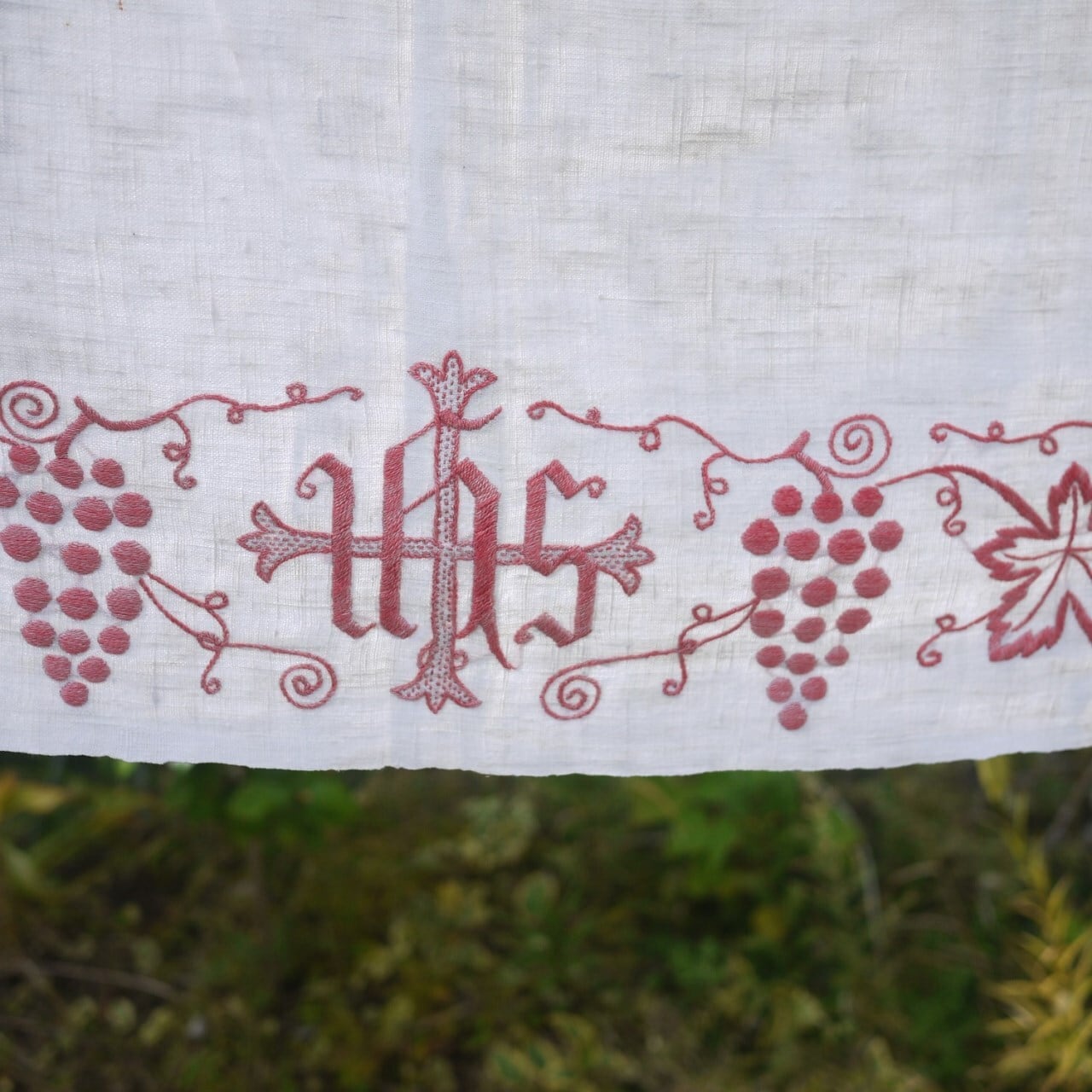 教会堂の掛布 レッドワーク葡萄 IHS ドイツ