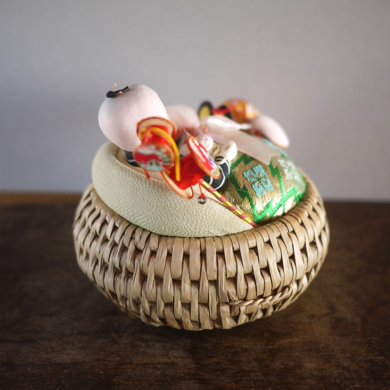 冬場、ご飯を保温しておくための藁編みの保温籠(いづめ)に、