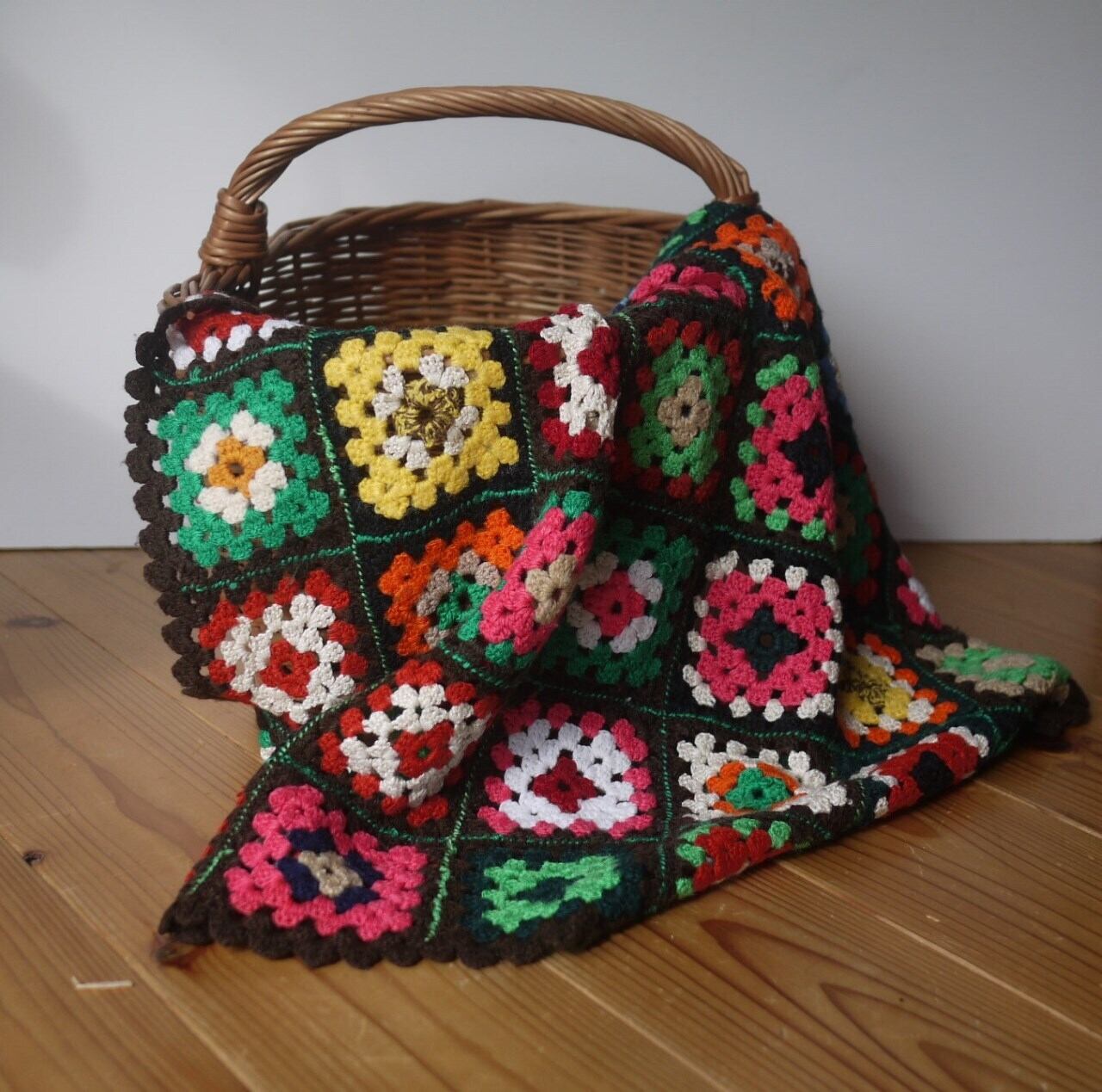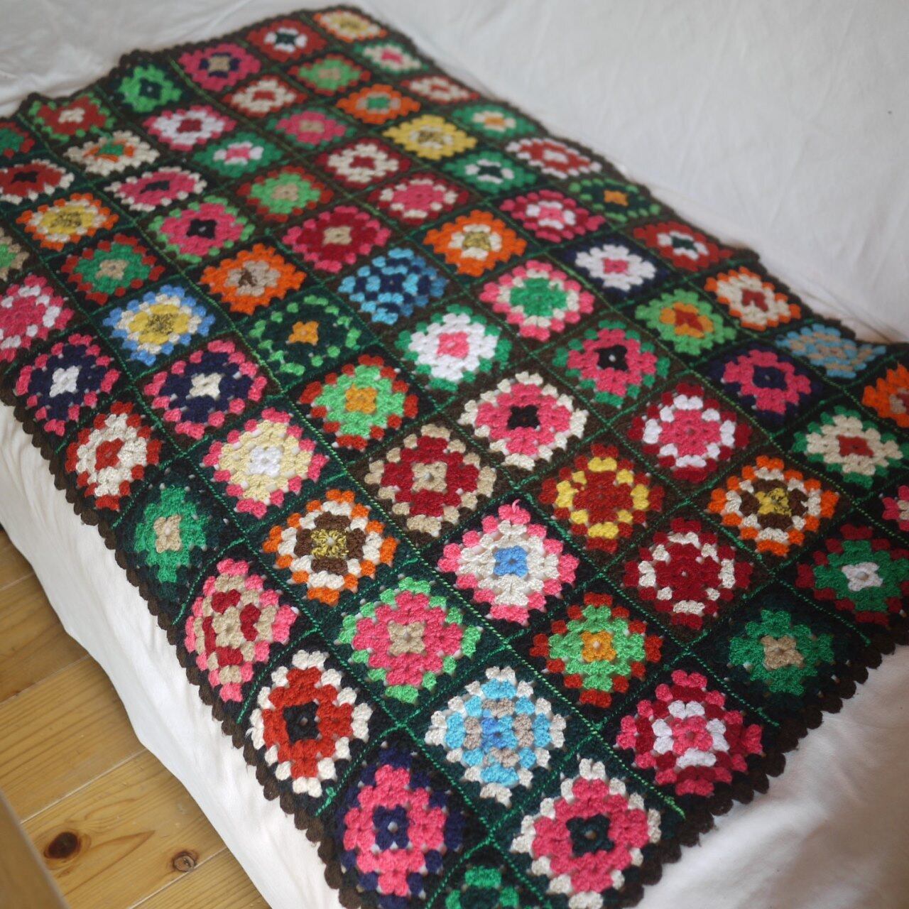 ニットブランケット モチーフ クロッシェ編み大判 ドイツ
