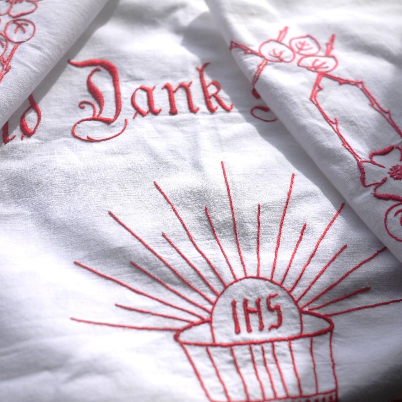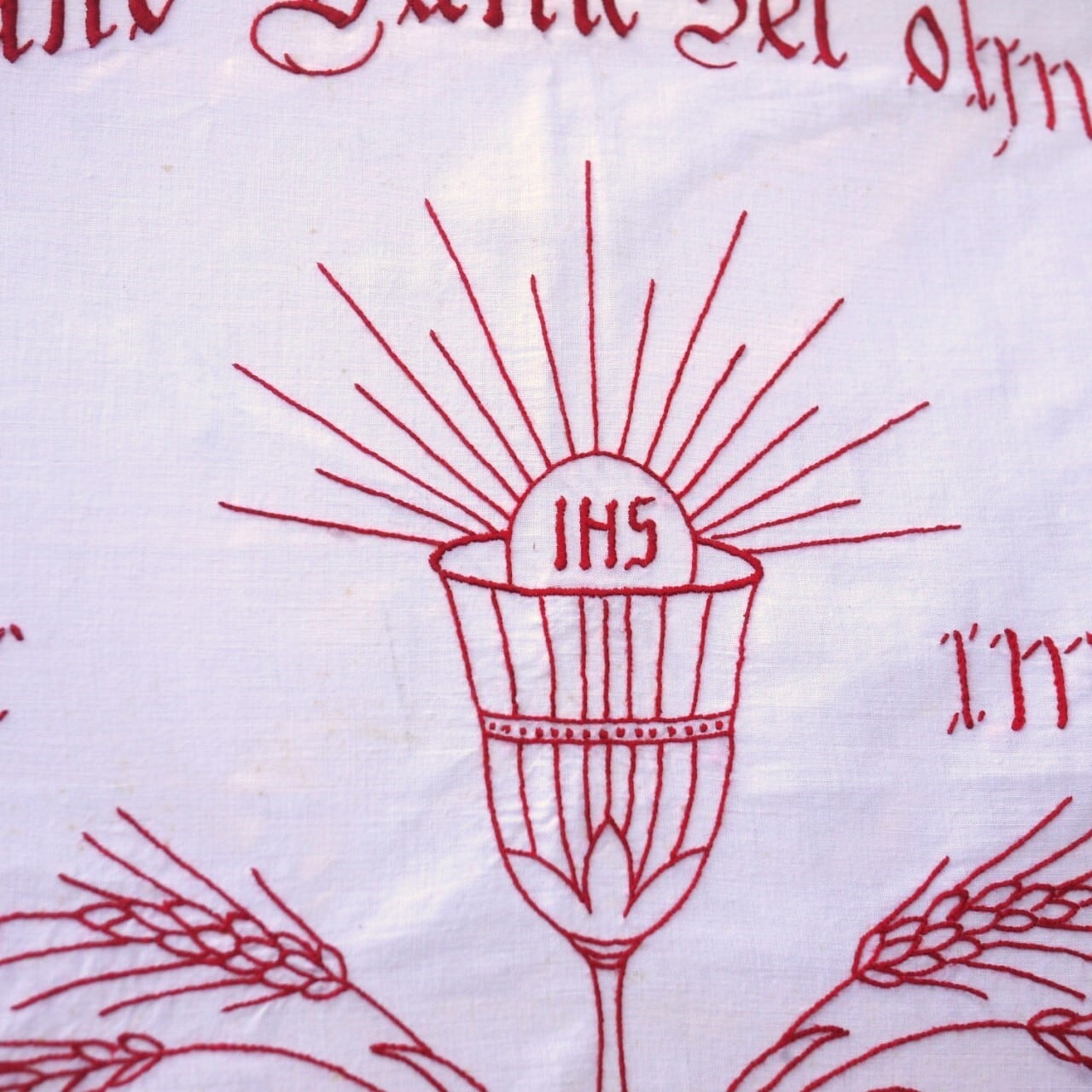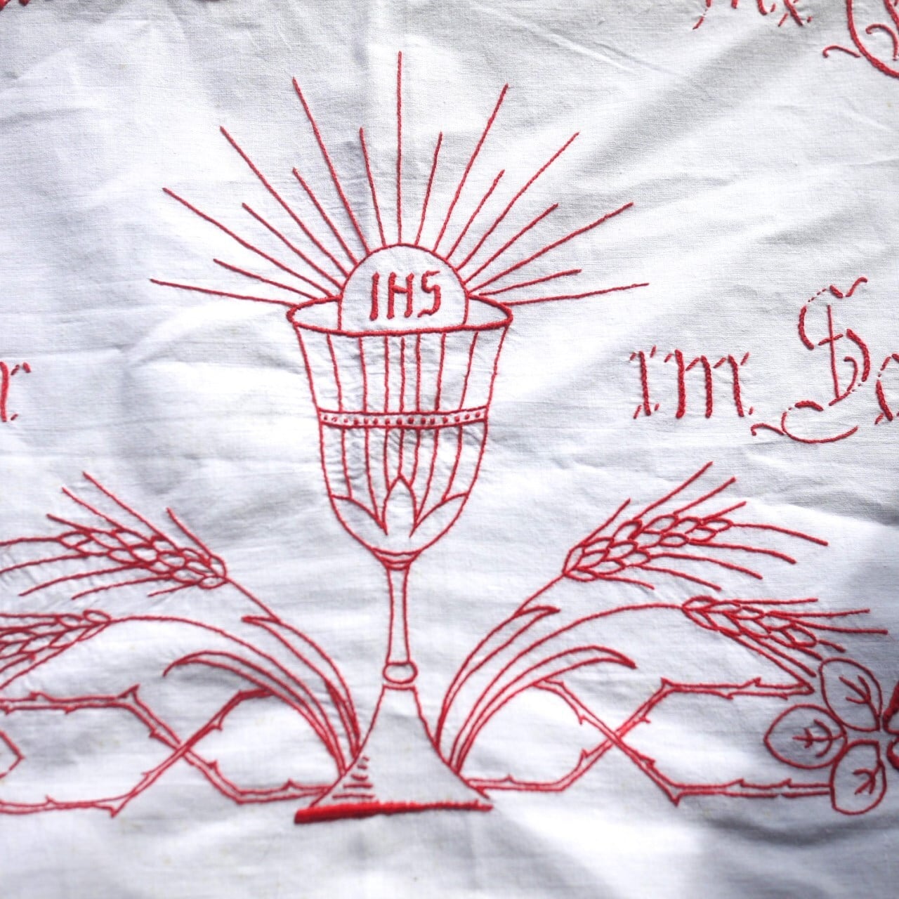 教会堂の掛布 レッドワーク刺繍 IHS麦と野ばら ドイツ