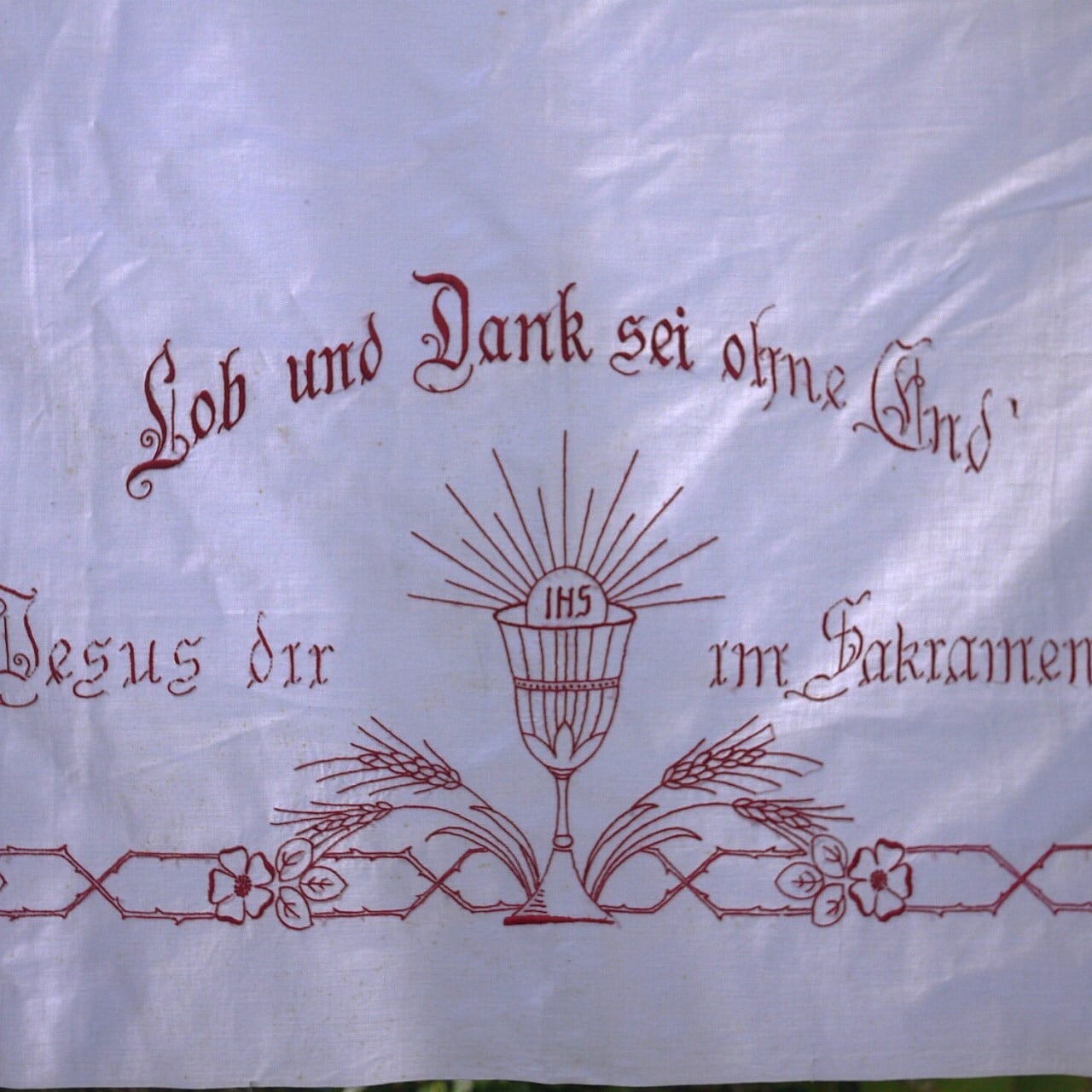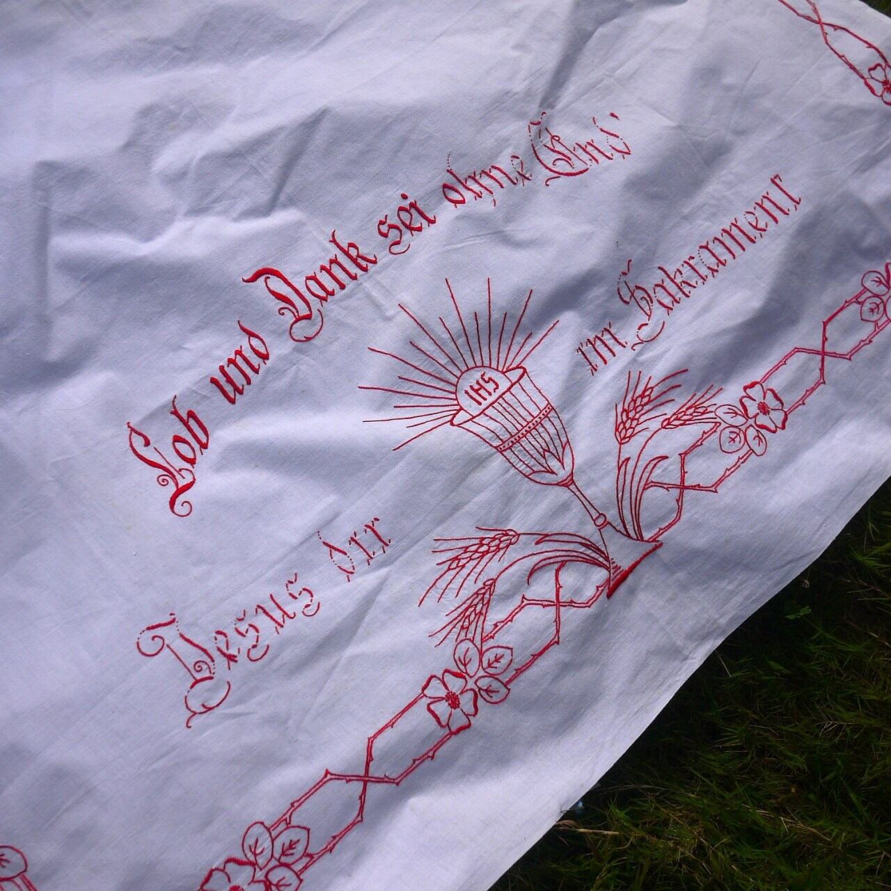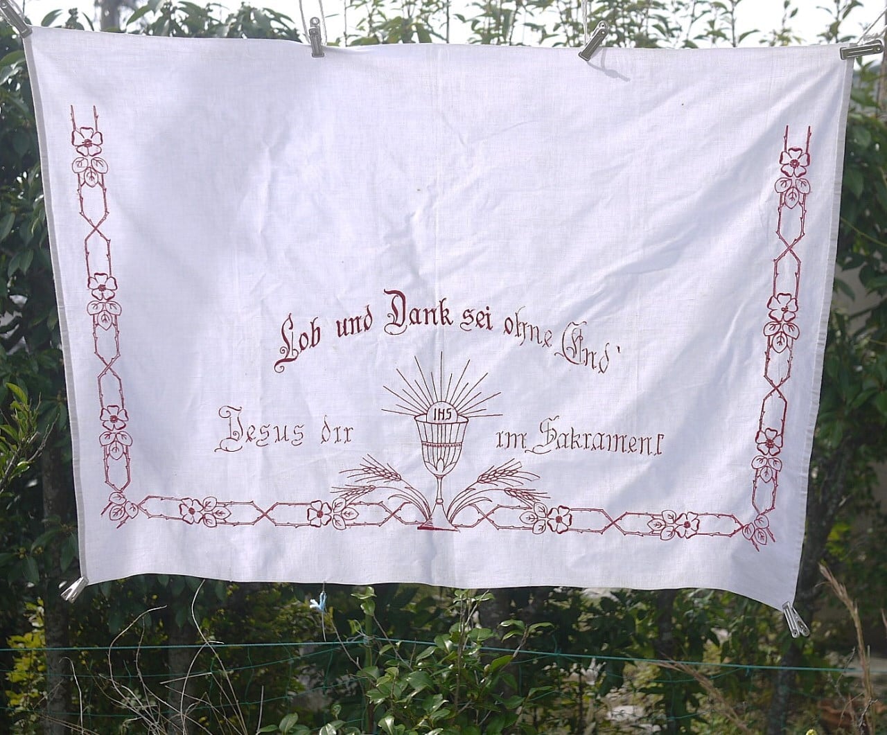 教会堂の掛布 レッドワーク刺繍 IHS麦と野ばら ドイツ