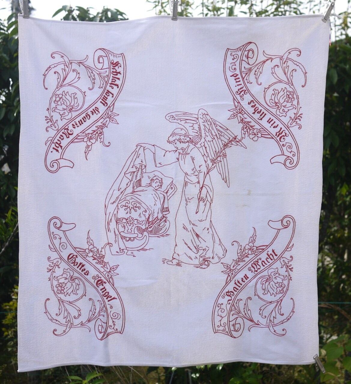 ブランケット レッド刺繍 天使と赤ちゃん ドイツ