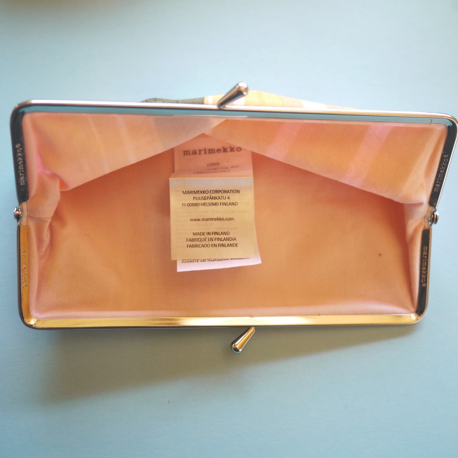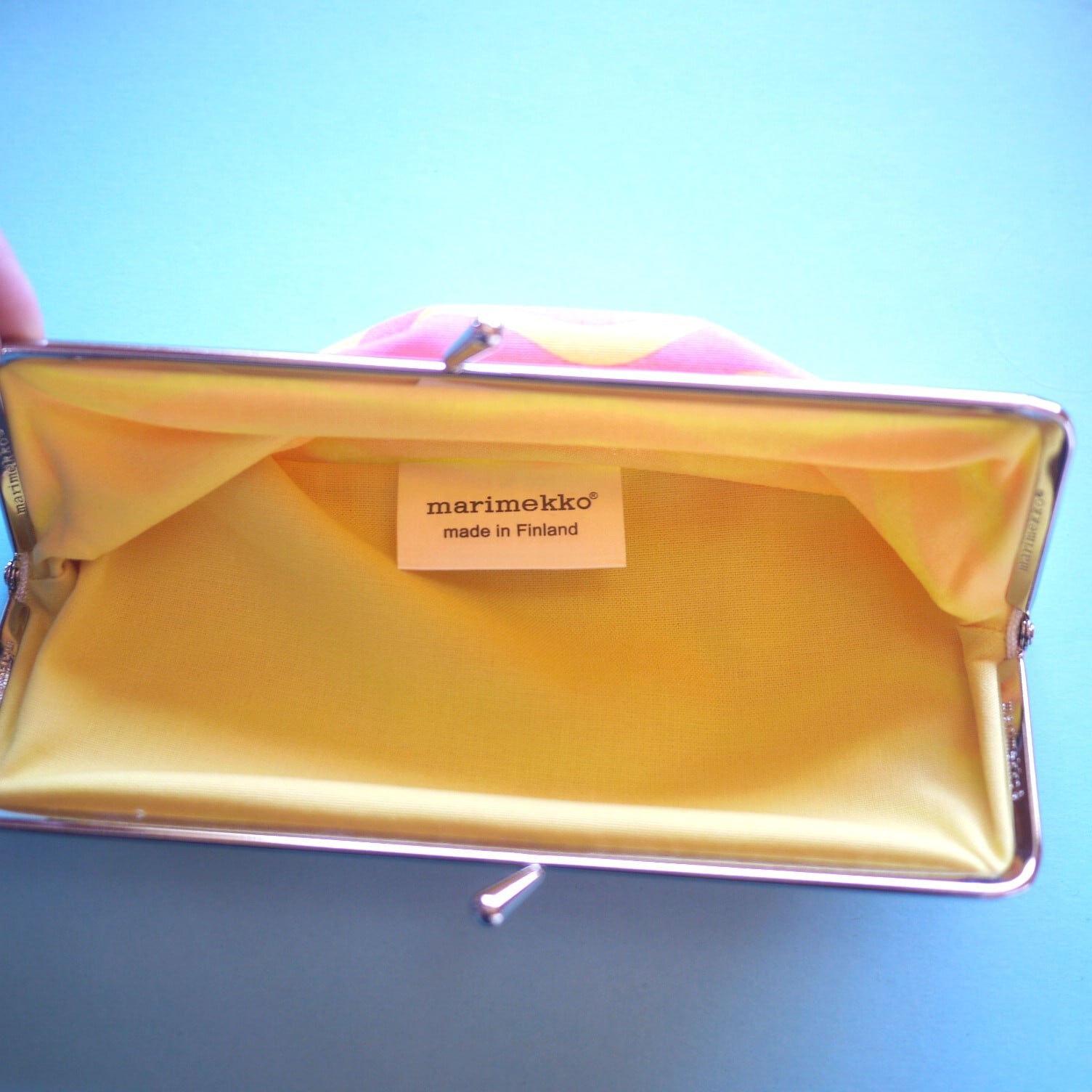 がま口の内側にはマリメッコのロゴ。
