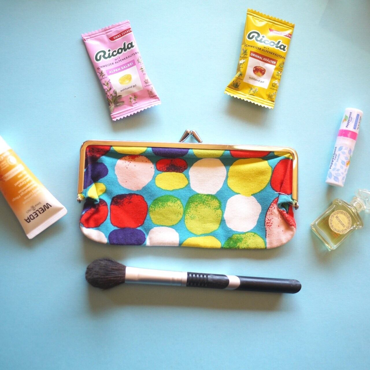がま口タイプのかわいいポーチ。