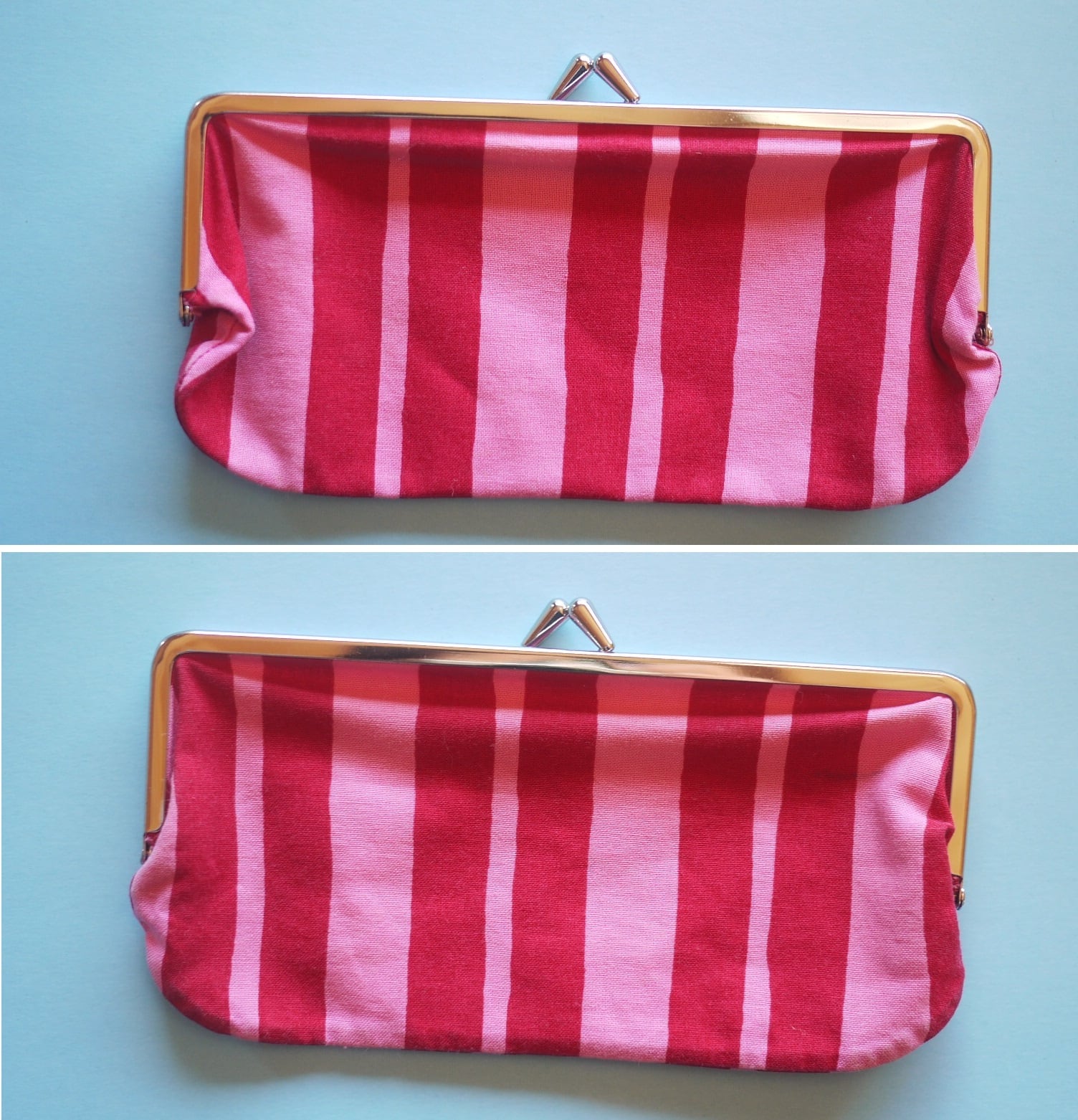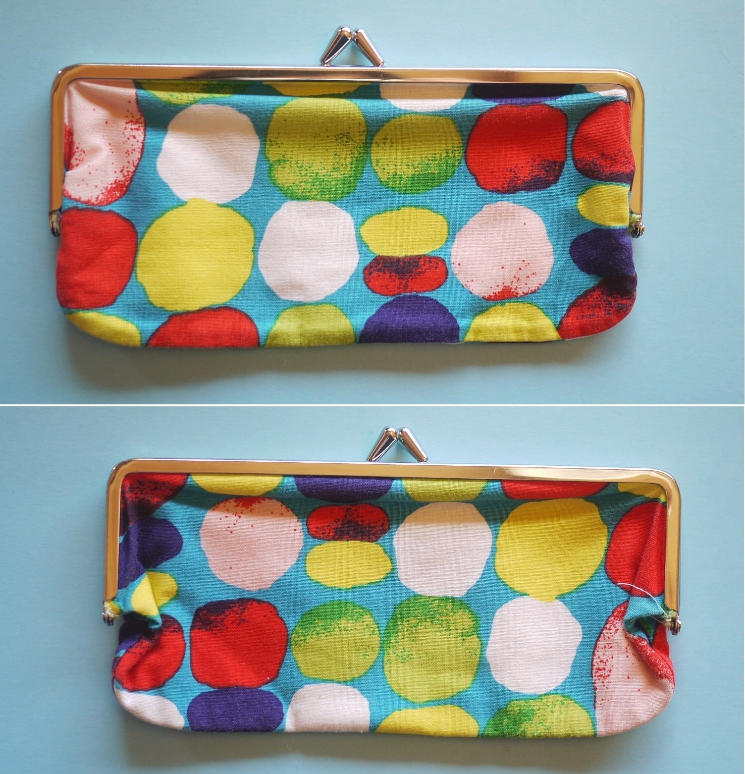 横長でぱっくりと開くがま口タイプ。