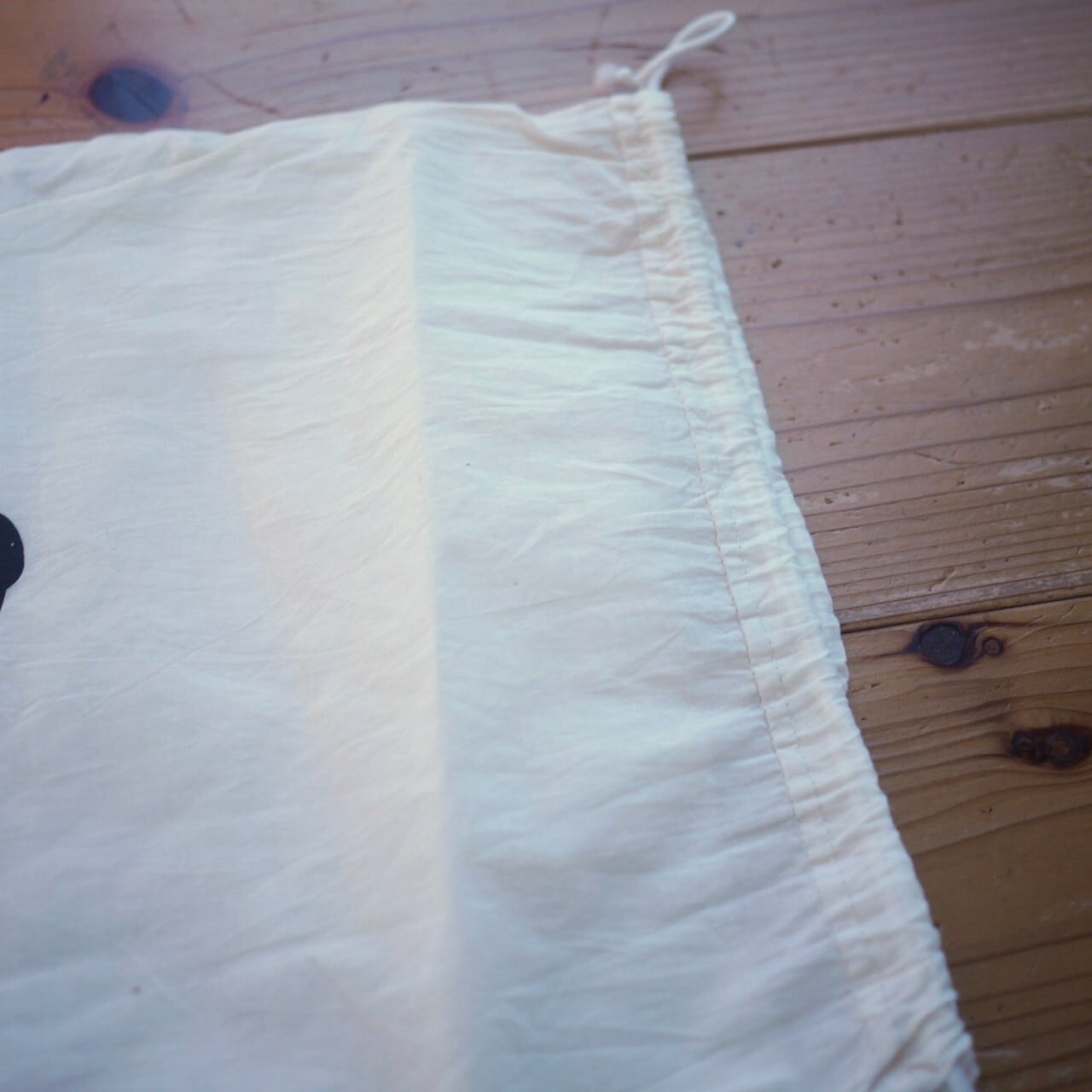 オフホワイトの薄手生地、内側に仕切り布があります。