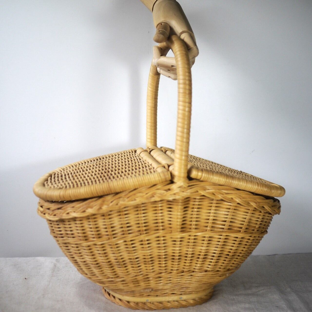 ◆サイズ:かご口約w36×20.5cm 底約17×12.5㎝ h20cm ハンドルh38cm