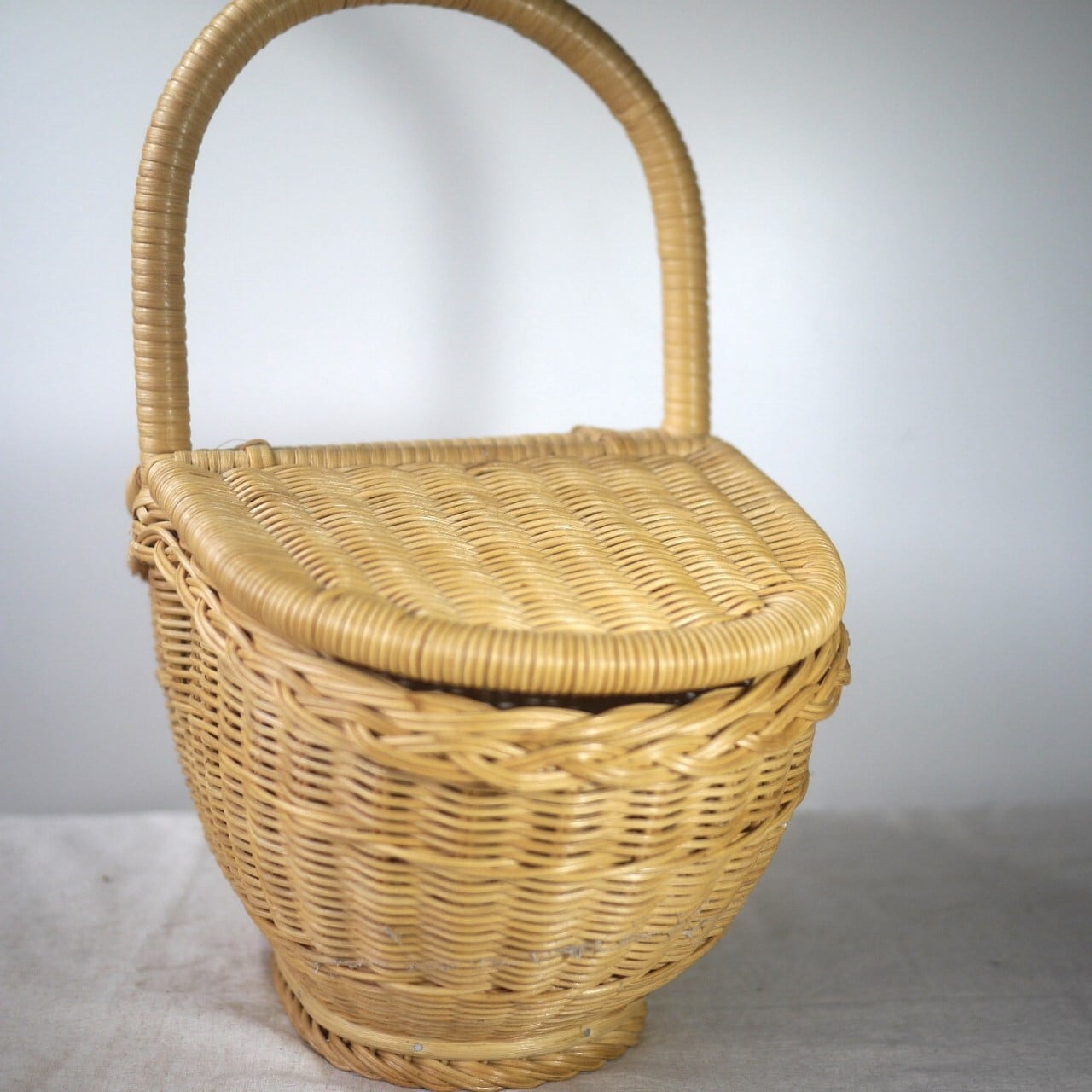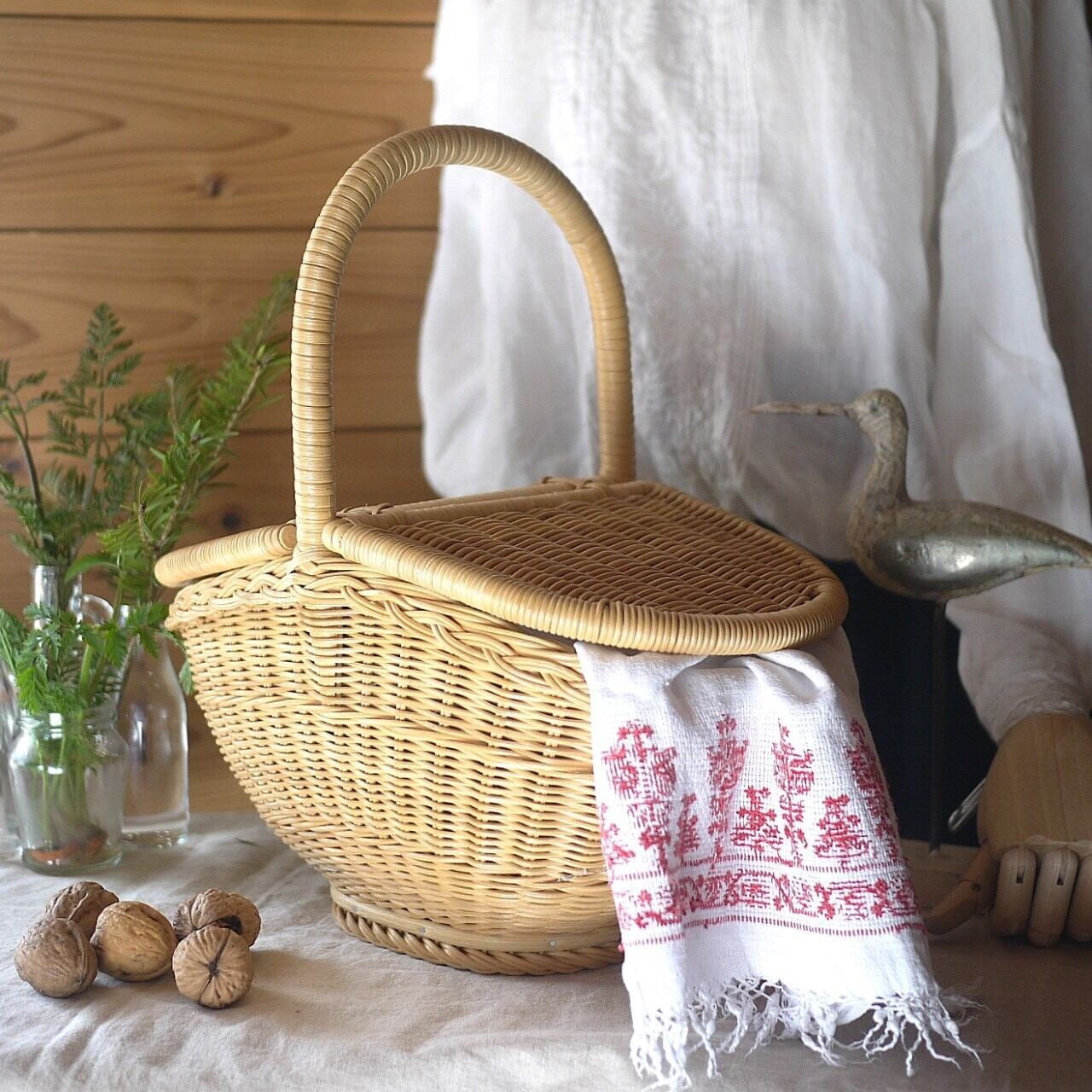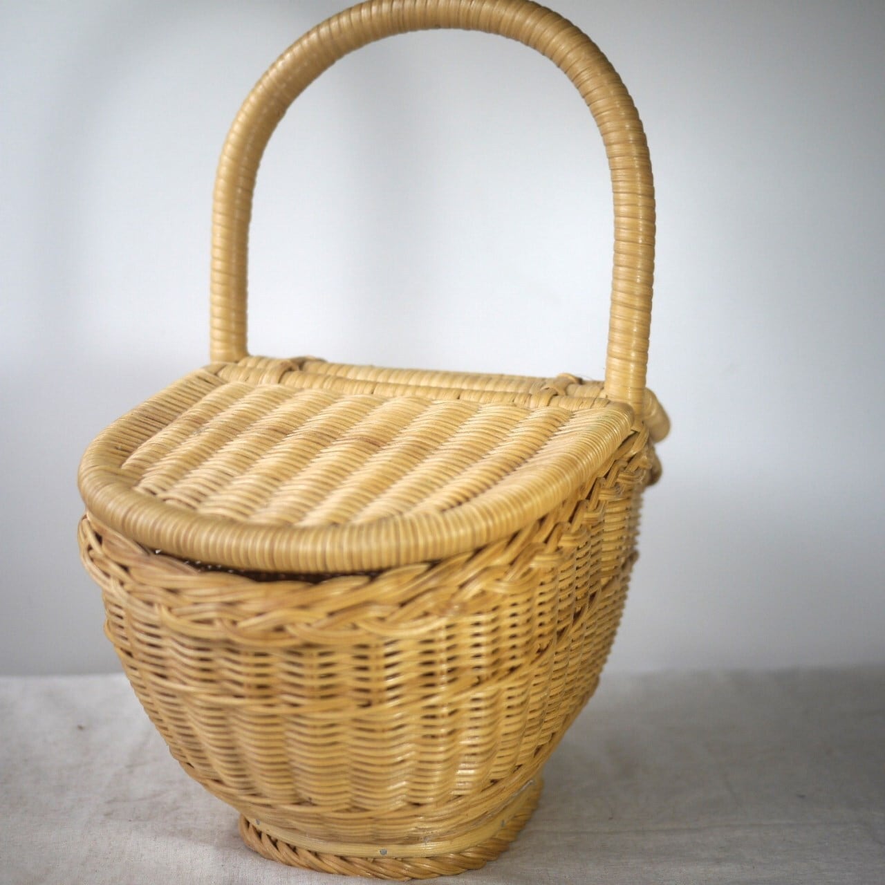 かわいい船底型のヴィンテージなラタンのバスケット。