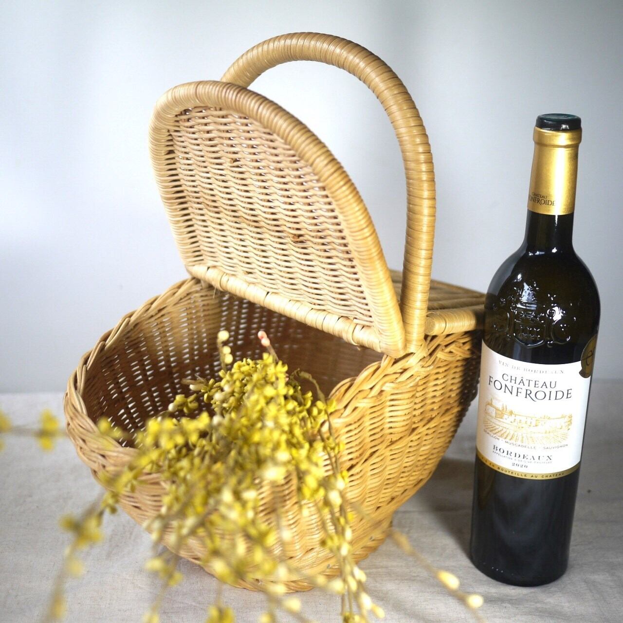 外側から内側に向かって蓋を開ける形のかごです。