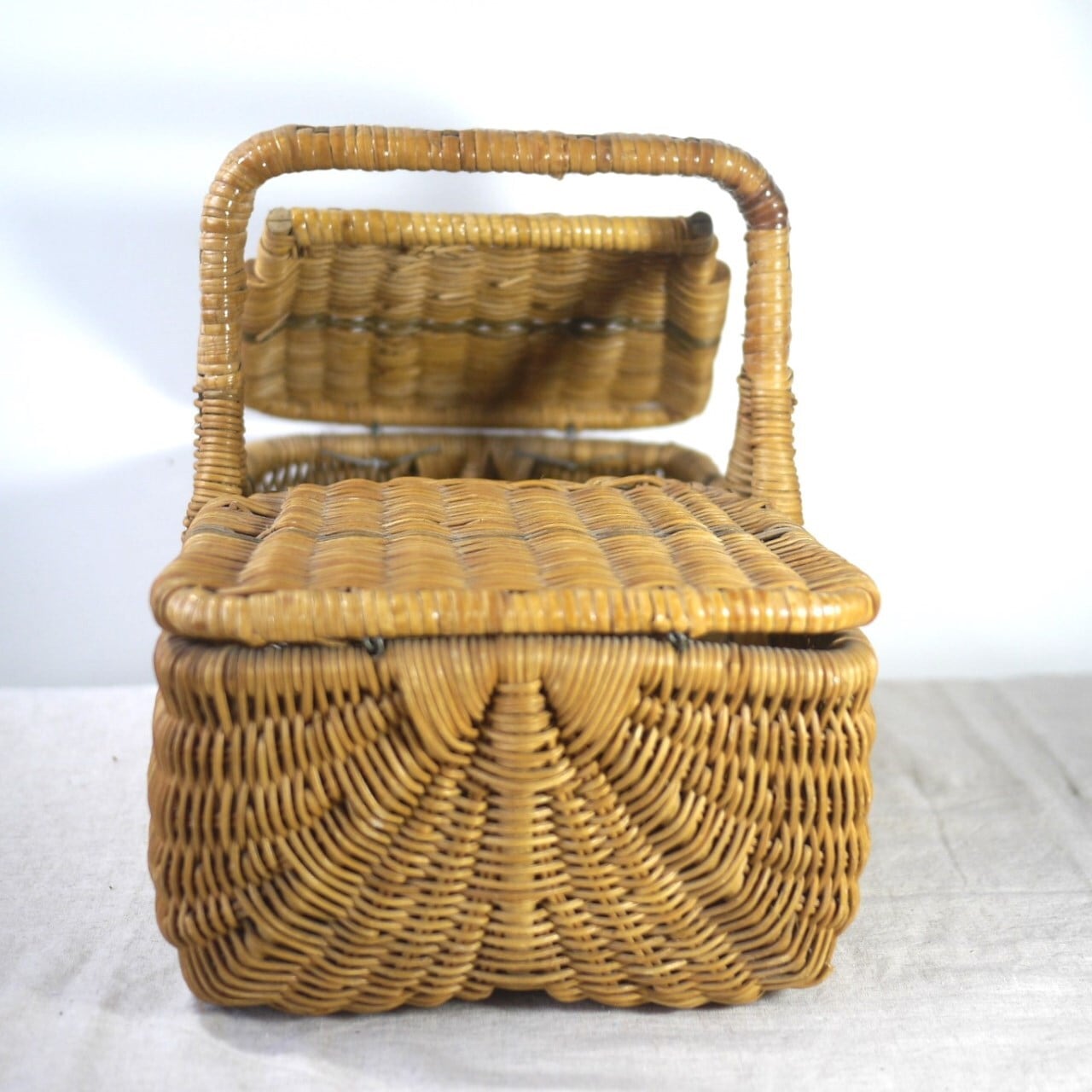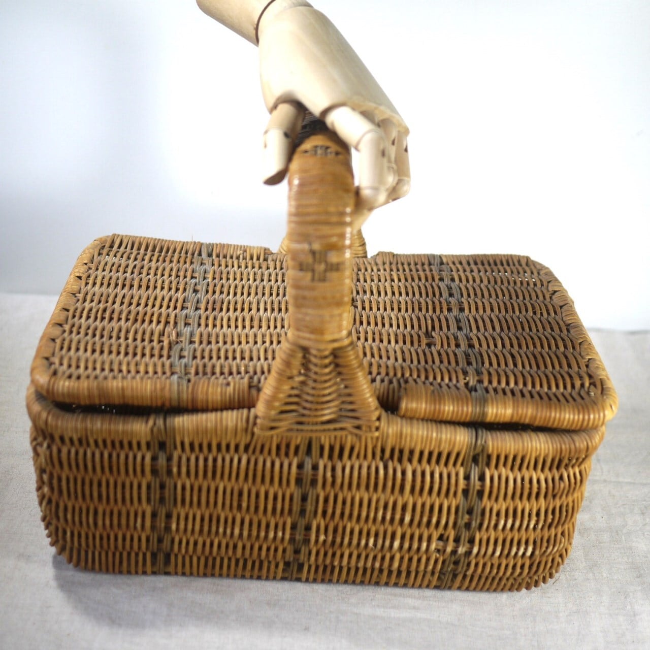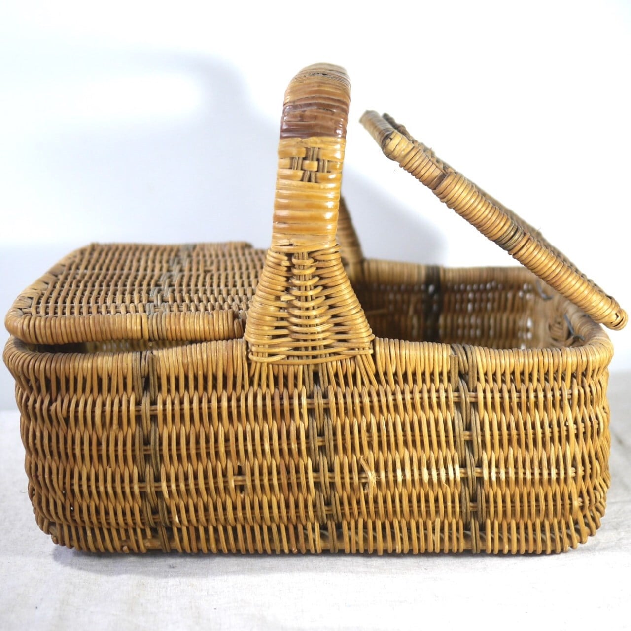 バタフライ籐バスケット ワンハンドルスクエア ドイツ