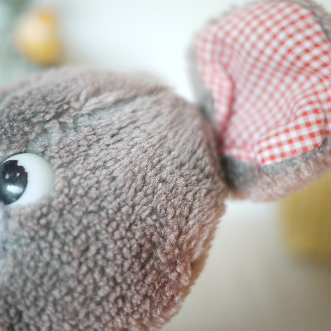 プラスチックアイ、鼻は毛糸玉のポンポン。