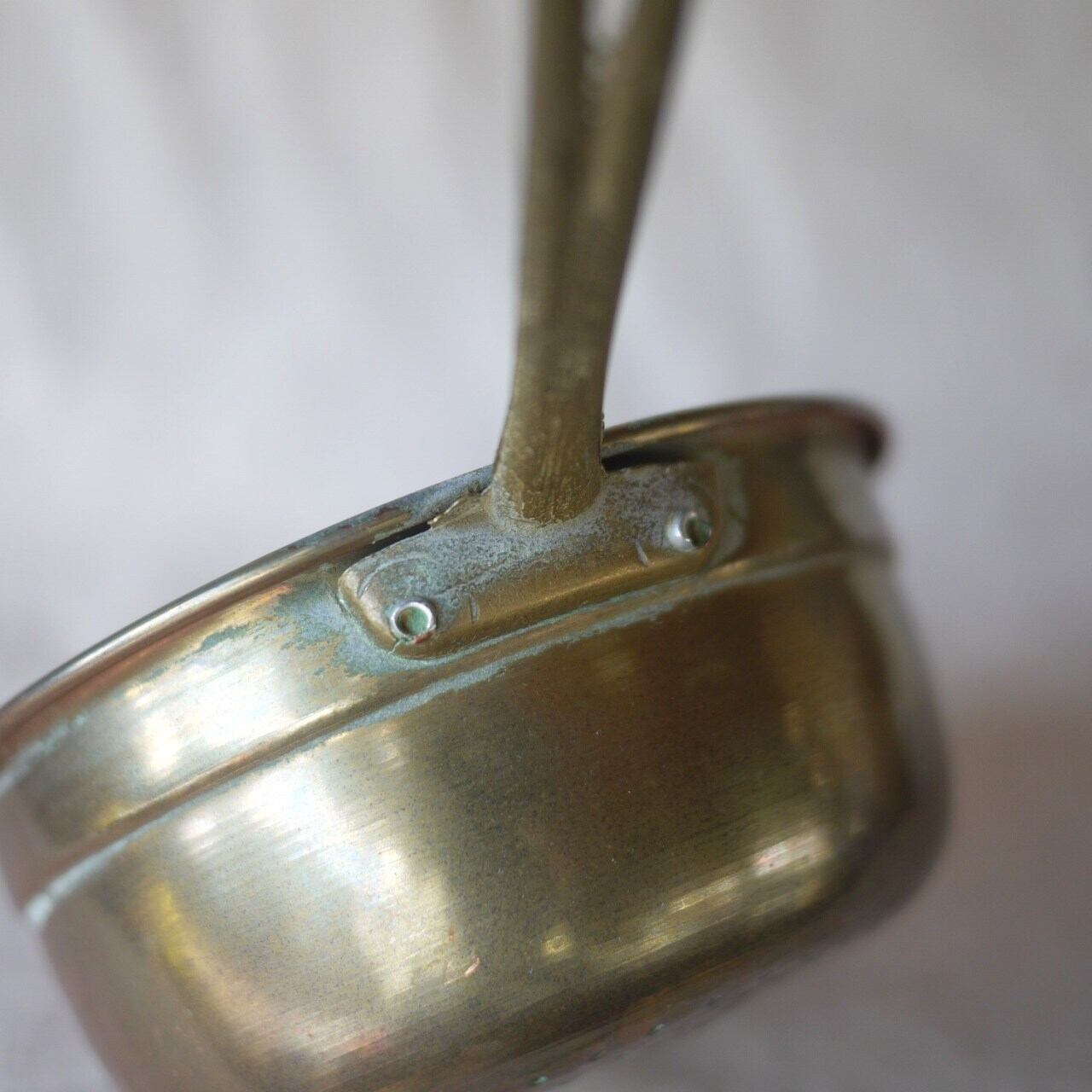 内側が赤い銅色、持ち手とその周辺が黄銅色をしています。