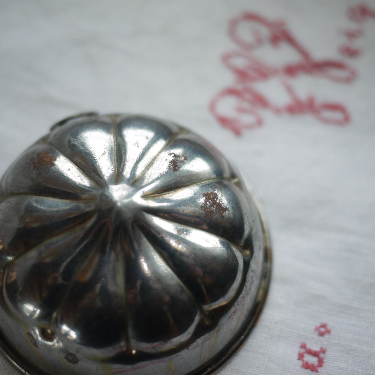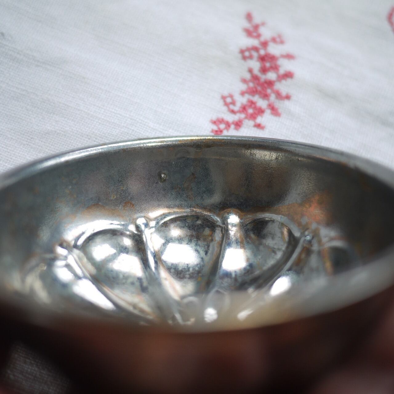 錫色の花びら模様のモールドには表側に錆が現れています。