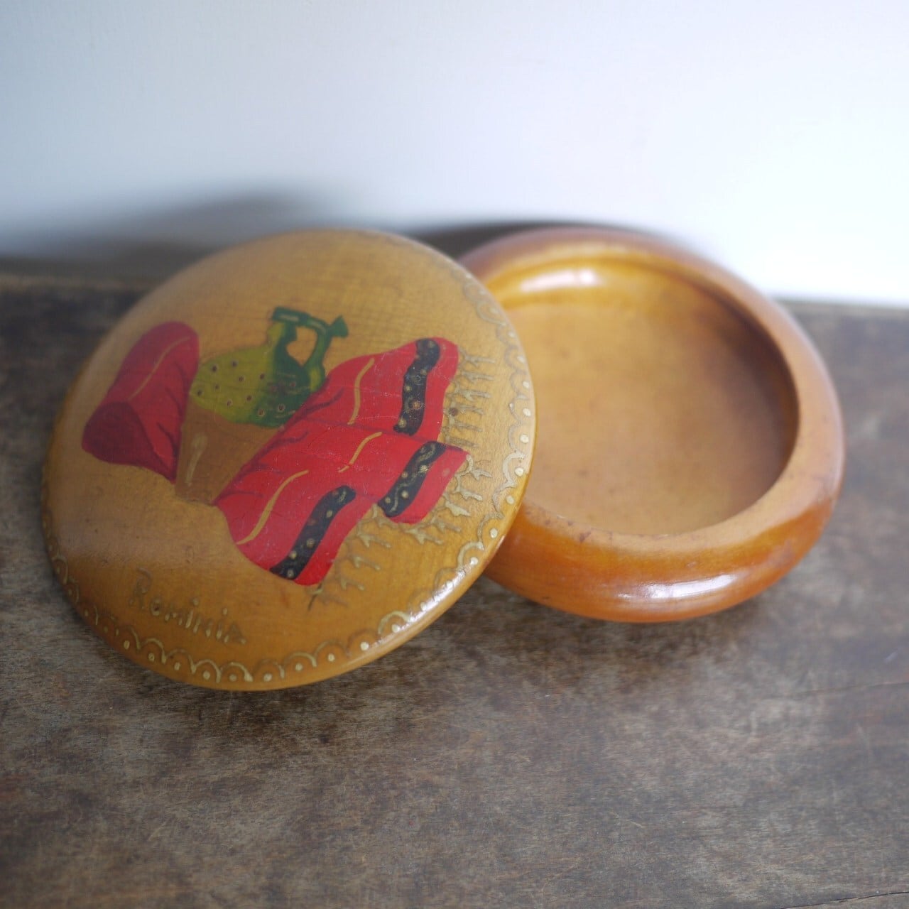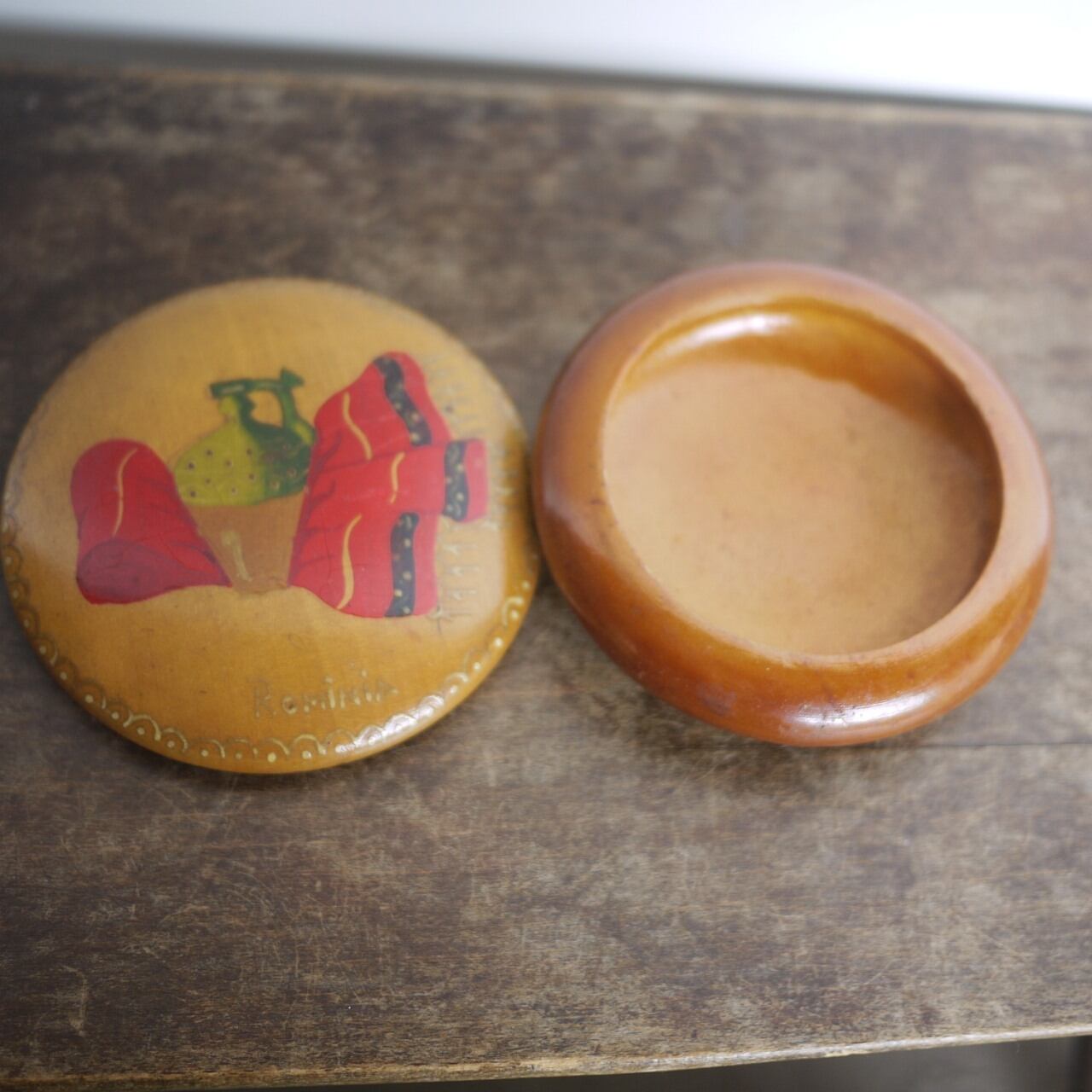 [木製丸い小物入れ ハンドペイント ルーマニア]